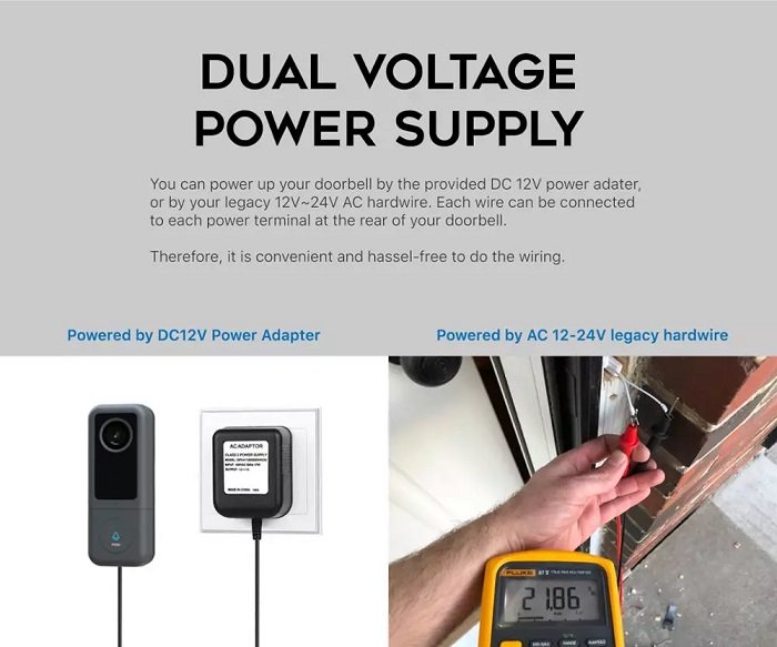 - Maitinimas (12-24V) idealiai tinka pakeisti esamą buto durų skambutį
