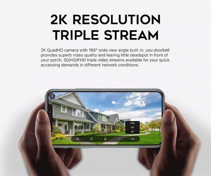 - Aukštos kokybės 2K QUADHD 3MP Wi-Fi buto durų skambučio kamera