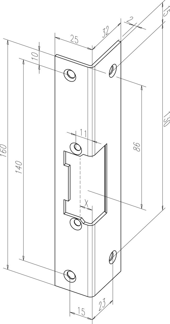 Kampinė staktos plokštelė. Trumpa iW 25x32x160, universali.