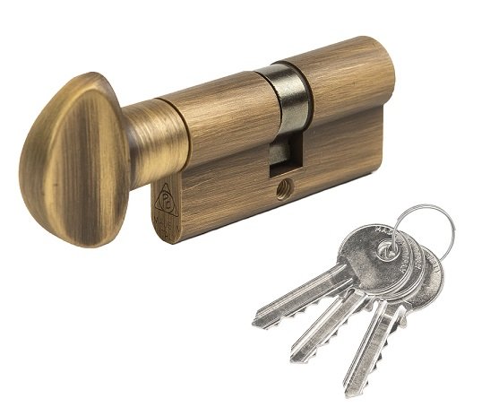 Žalvarinis, italų gamintojų eurocilindras CORTELLEZZI PRIMO su suktuku.