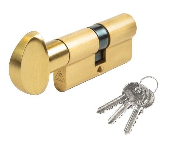 Žalvarinis, italų gamintojų eurocilindras CORTELLEZZI PRIMO su suktuku.