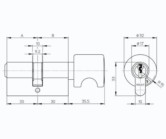 Patikimas, vokiečių gamintojo WILKA rakinimo cilindras su suktuku A klasės.