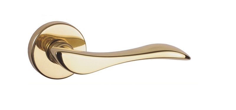 Rankena skirta vidaus patalpų 38-45mm storio durims. Rankenos tinka Europinio (DIN) ir skandinaviško standarto spynoms. Pagaminta iš žalvario.