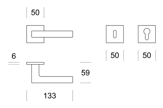 Išskirtinio dizaino ENTO durų rankenos skirtos vidaus patalpų 38-45 mm storio durims. Rankenos tinka Europinio (DIN) standarto spynoms. Rankenos yra su 6 mm storio rozetėmis.