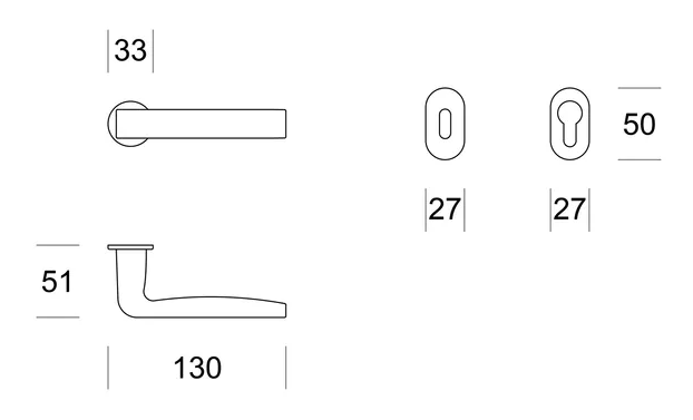 Išskirtinio dizaino ENTO durų rankenos skirtos vidaus patalpų 38-45 mm storio durims. Rankenos tinka Europinio (DIN) standarto spynoms. Rankenos yra su 3 mm storio rozetėmis.