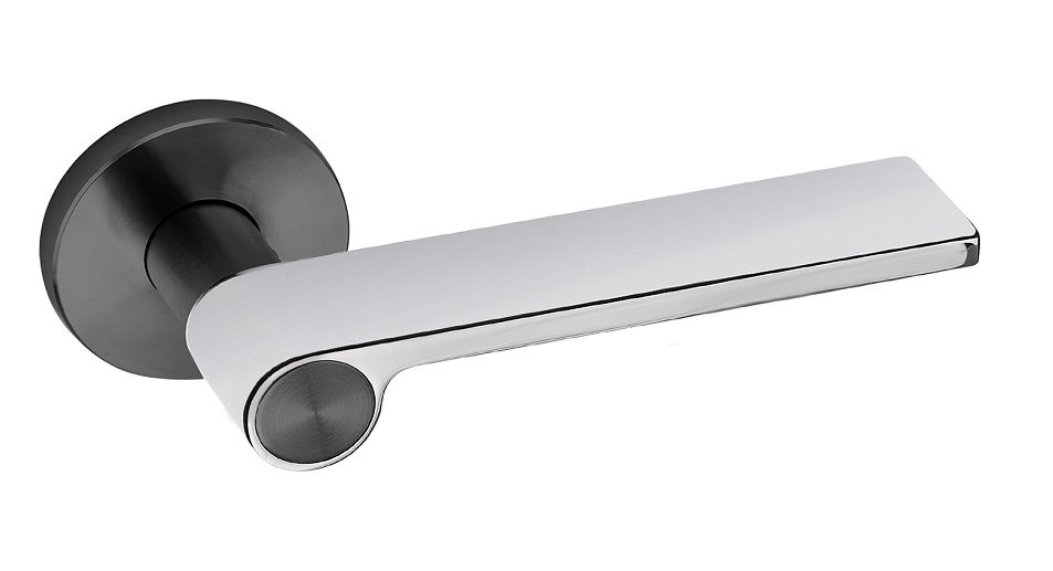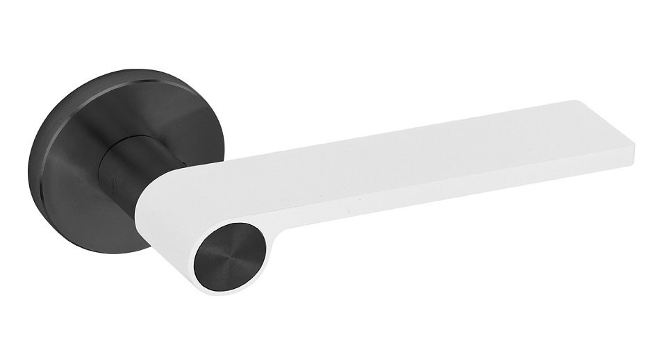 Portugalų gamintojo JNF nerūdijančio plieno durų rankenos su skirtingų spalvų lenkiamąja dalimi.