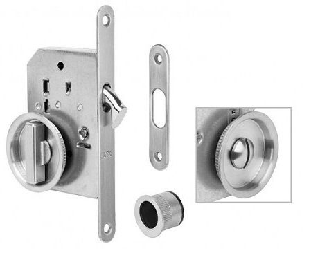 Stumdomų durų spyna su apvaliu apyrakčiu. Rakinimo būdas – WC.